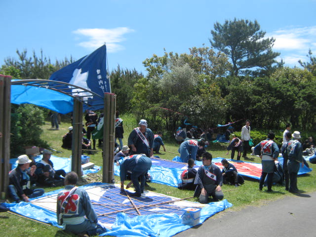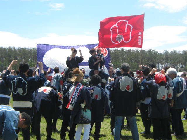 静岡県浜松市では、毎年ゴールデンウィークに浜松まつりがおこなわれている。 その中の一つとして開かれるのが「凧合戦」。市内に150以上もの組があり、それぞれ独自の紋所を持っている。この一年に生まれた子供の名前を入れた凧を揚げるところも。糸が絡むと切り合うが得点などはない。 (2012. 5. 4)