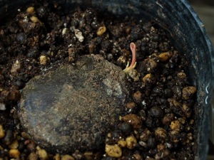 今回、#001は発芽しやすいようにヘソの近くの平らな面にちょっと大きめのキズをつけましたが、これは余計なお世話だったかも知れません。