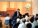 | まずは、選考委員の紹介。 選考委員は15名いるそうですが、作家・荒俣宏さん、漫画家・里中満智子さん、作家・関川夏央さん、大学助教授・ジャクリーヌ・ベルントさん(知らん)は欠席、作家・夢枕獏さんは祝賀パーティーから。 下の写真に写っていないのは、まんがの森勤務・印口崇さん、マンガ研究者・竹内オサムさん、筑摩書房・藤本由香里さん 選考委員を代表して竹内オサムさんが挨拶をしたのですが、小説の世界がなんとかとか言い出したとたん、いしかわ先生が隣の印口さんと二言、三言。竹内さんの挨拶をずっとデジカメのビデオモードで撮っていたのですが、先生の様子をカメラに納めようと慌てたせいか、帰ってみたらビデオが保存されていなくて、残念。 |