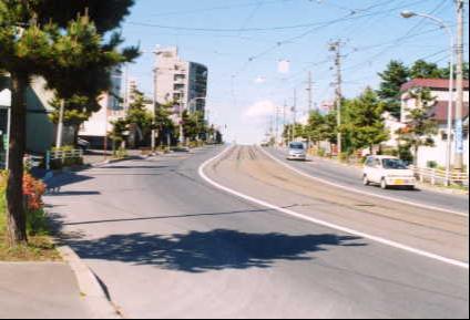 市電「青柳町」電停から谷地頭温泉へと向かう電車通りの坂だが名前は付いていないようだ。昔から日本酒「北の誉」、「グリコポッキー」のコマーシャルや映画などに頻繁に登場しているのに名前が無いのは少し残念だ。 坂を車体を僅かに左右に揺らせながら登ってくる電車が、坂の頂上にある電停に発着する風景は、函館の代表的な風景の1つといって良いのでは。 |