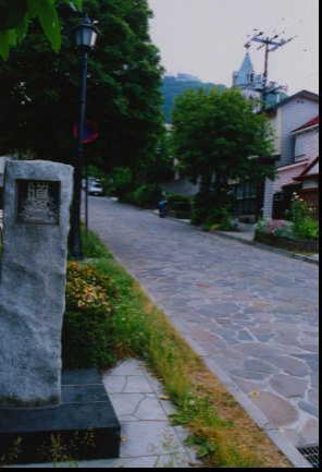 以前は、未舗装の「ただの坂」であったが、元町公園の整備に伴って、石だたみが美しい、おしゃれな坂に変貌した。坂の両側にはナナカマドの木が植えられており、この季節は美しい紅葉を見せてくれる。 この坂の突き当たり左の細い通りには、おみやげなどを売る売店が建ち並んでいるが、呼び込みの声がうるさく、落ち着いて散策を楽しめないため、あえて遠回りして通らないようにしている。 |
