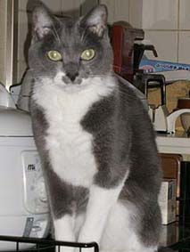 ●雑種(筑波山懐出身)のオス猫、18才、名前は「ネム」。 毛の色はチャコールグレー+白。目はオリーブグリーン。 ●特技 家中の閉まっているドアを把手に飛びついて ブラ下がり体重移動までして開けてしまう技はまさしく 天才の域。証拠写真を掲載したいがシャッターチャンス を逃してばかりで残念・・・