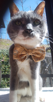 ★この子と出会う2週間程前に寝室のドアをガチャンと 開けて猫が入って来る夢を見ました。姿、色ともに そっくりで・・この子がドアの把手にブラ下がっている 後姿を見る度に不思議な縁を感じます。