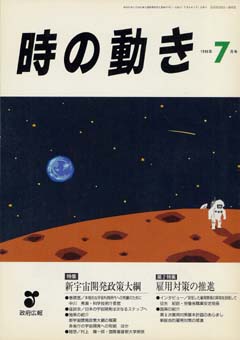 これは今から12年前(1996年)に総理府(現・内閣府) が刊行した「時の動き」という政府広報誌です。毎月表紙 イラストを担当しておりこの号の特集は「新宇宙開発政策 大綱」というもので宇宙開発の新たな分野への挑戦として 月探査を掲げていました。絵のイメ−ジを探っている内に 「地球の空に月を浮かべるように月の空にブルーの地球を 浮かべたら面白いかな?」というアイディアが出、ちょっと 軽いノリで制作しました。 12年後、まさか現実の画像となって目の前に現れるとは ・・・・ビックリ! |