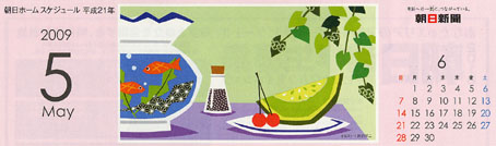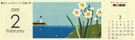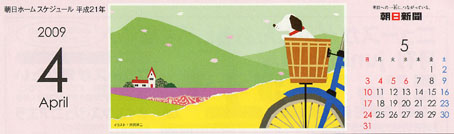 朝日新聞の毎月配達されるカレンダーのイラストです。(2009)