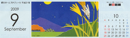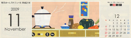 朝日新聞の毎月配達されるカレンダーのイラストです。(2009)
