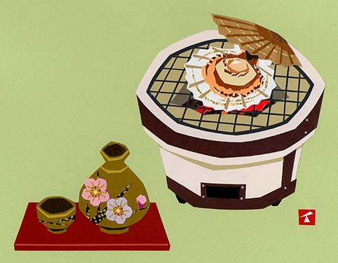 網焼きホタテとお銚子