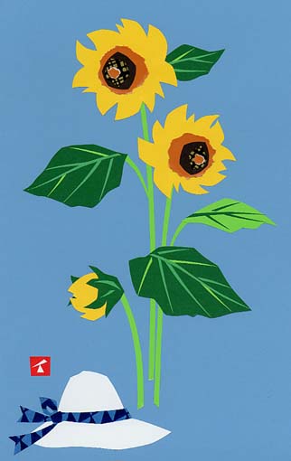 ひまわりと帽子