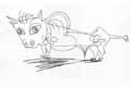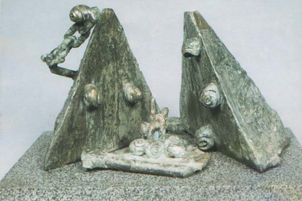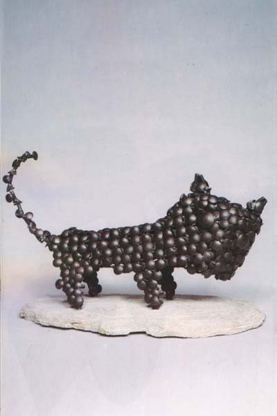 様々な素材をもちいてユーモアと風刺の世界を構築しています |