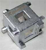 | リアブレーキのピストンを押し戻すには、ラジオペンチのようなもので、回しながら押し込みます。でも、これが結構めんどうで、あちこち傷だらけにしてしまいました(^^;) これ以上傷つけるのは忍びないので、ピストンを押し戻す専用工具を買ってきました。 これは、アストロプロダクツの、ブレーキピストンキューブというものです。3/8のラチェットを挿して回すことで、楽にピストンを回せるようになります。値段は750円とちっと高い気もしますが、なんだか面白そうなので買ってみました。 短めのエクステンションを付けて使います。ピストンが固着していても軽く回せるので 結構楽です。ラジオペンチを使うよりずっと良いのでオススメ! |