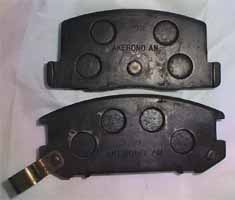 | 形状が違う、リアブレーキパッド(純正品) リアのブレーキパッドは、外側と内側でパッドの形状が異なります。 大きい方が外側、小さい方が内側です。 フロントのように、パッドにバネを付けなくて良いのですが、実は純正パッドには パッド自体にバネが付いています。G2には、このバネは付いていませんので パッドが無くなる前に交換を心がけておかねばなりませんね。 |