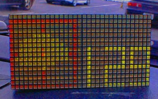 これは、32x16ドット・2色のLEDディスプレイを使ったタイプです。モバイルギアを使ったタイプとは違い、ずっと車に固定しておき使うことができます。32x16ドットとLEDとしては高解像度な部類に入ると思いますが、それでもパソコンなどと比べると著しく見劣りしてしまいます。しかし、2色LEDであることを生かして見やすい表示画面を心がけたつもりです。
