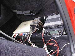 無線機をラックの中に入れて蓋をすると操作ができなくなってしまいます。TM-G707はセパレート式なので操作パネル部を助手席側のダッシュボードに両面テープで貼り付けました。運転席側からだと少し遠いのですが、なんとか操作できる距離なのでなんとか使えそうです。操作パネルは小さいので何処にでも付けられそうですが、見にくかったり、触り難かったり、取り付けが困難だったりと案外付ける場所がありません。最も使いやすい場所であるセンターコンソールの灰皿の上には、別の機器を取り付ける予定なので、結局、遠くになってしまいました。まあ、使用頻度も多く無さそうですので・・・