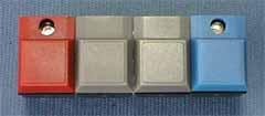 切り替えスイッチは、別の装置に依存しなくて済むように上の写真のようなプッシュスイッチを使います。青は前カメラ、赤は後カメラで、それぞれ青/赤のLEDが点灯します。起動時には自動的にナビに切り替わり、前/後カメラを選択後、30秒〜1分ほどで自動的にナビに戻ります。ナビや外部入力時には、5〜10秒ほどでインポーズ文字が消えるので邪魔になりません。