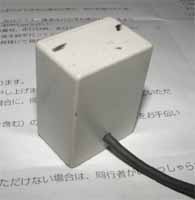 | 現在使用中のセンサ(試作基板その1) センサはジャンクの磁気コイル、 仕様不明ですが、マイクロカセットか何かの ピックアップコイルのようです。 高精度アンプを使用して高感度だけど、 実際上は、そこまでの感度は必要がなさそう |