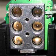 受光部の拡大写真、黒っぽいのは赤外線レンズ |