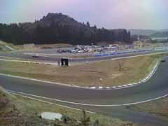最初の1本は、空気圧をF1.9、R2.2と、−0.1に調整し走行したものの、途中からフロントがロックしてしまいミスの連続です。走行中は気付かなかったのですが、走行後に空気圧を測ってみると、なんと前後共に2.5を越えていました(^^;) 2本目は、温間時にF2.0、R2.5とオーバー気味になるよう調整したところ、こんどはオーバーが出過ぎて出口で踏めません! すぐにピットインしてR2.3に調整したところ、バッチリ踏めるようになりました。なんかキレたように走れるようになり、次の周回で60秒、その次の周回でベストラップを出し、その次の周回は、ちょっと踏みすぎて8コーナー出口でお釣りをもらいコースアウト、あやうくガードレールに激突しそうになりました(^^;) 車の下を打った気がしたので、次の周回は、様子みながら62秒、その次は少しペースを上げて61秒、そして、59秒台を2連続、その後、バックマーカーに追いついてペースダウンしたとことでチェッカーフラッグとなりました。午後からは攻めてやるぜ! と思った物の午後は雨降りでした・・・