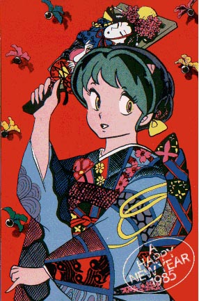 書店などで無料で配られていたポストカードの類にはかなりの種類があったのではないかと思っています。左二つは新年用のもの。絵柄的には、原作からの再録にはなるのですが。