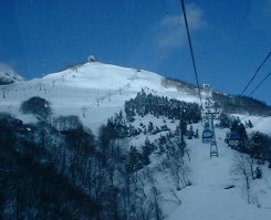 The Iwappara skiing area near from Iwa-no-yu was an easy skiing area for beginners before. Now, a gondola lift is built, slopes are also extended and it became very much interesting. The panorama of the slope |