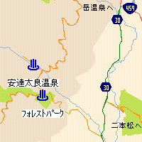 ■交通 東北自動車道の二本松ICで降りて、国道459号線を岳温泉方向へ進む。岳温泉の入り口で左折して県道30号線(本宮土湯温泉線)に入る。5kmほど走って大玉温泉の看板を見つけて右折。4kmほど坂を登って県道380号線(岳温泉大玉線)に突き当る。左折して坂を下り1kmほどでフォレストパークに着く。駐車場は広い。 ![]() オフィシャルページ 調査日:2005年2月 |