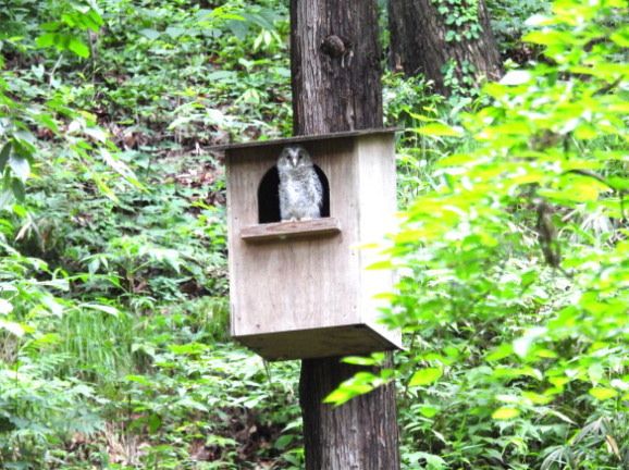 | 金龍寺周辺 アオバズク 雄 2025.6 | 金龍寺周辺 アオバズクのこども 2025.7.11 |