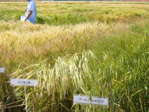ちょっと、一念発起して「片渕須直監督と歩く『マイマイ新子と千年の魔法』探検隊6」(2011年9月24日開催(於:山口県防府市))に参加してみることにした。 実は、劇場公開当時に『マイマイ新子と千年の魔法』を観たとき、最初に抱いた感想が「画面いっぱいに二条大麦がたなびいているなあ」であったのは、まあ職業病というべきかもしれない。 日本でビールが造られるようになったのは明治以降のことだが、原料となる大麦はもともとは欧米から持ち込まれた。裏表紙にその当時の品種「ゴールデンメロン」の写真を入れてみたが(WEB版ではこの下段に表示)、これは研究目的で群馬某所で少量だけ栽培されているもので、現在日本国内で栽培されているビール用大麦にはこの子孫にあたるものが多い。 これらのビール大麦の最もわかりやすい特徴は、写真(↑)のように、麦の粒が対角に一対だけ実り、よくビールの缶に描かれている麦の絵の形をしている(これを二条大麦と呼ぶ)。国内で栽培されている大麦の中でも、麦ごはんや麦茶に使われる品種は六条大麦に分類され、それらは条の数が示す通り、穂に実る麦の粒が三対あり二条大麦のように平面的な形にはならない。 『マイマイ新子』のDVDを購入して自宅で鑑賞した際にも同じように思い、何気なくtwitterでつぶやいてみたところ、驚いたことに片渕監督ご本人からコメントがつき、「なぜ二条大麦をたなびかせたのか」に関するご説明をいただいてしまった。今回一念発起してみた所以である。 一念発起ついでに、自分がいくつかの映画やマンガについて過去に書いた雑文を棚卸ししてみた(1996年に自分の個人誌に載せたものの再録)。初めて読まれる方には一部の文脈が分かりにくいところもあるかもしれないが、その点はご容赦を。一ファンが、なぜ『マイマイ新子』に心惹かれたか、に関するケースブックとして読めるよう、現在の視点からの追記(編集後記)も加えてみた。