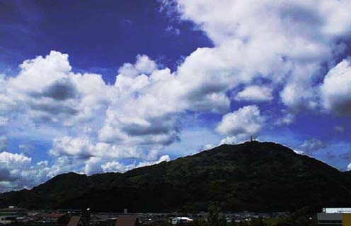 1999/8/15公開。「夏だッ!!」ということで、職場の屋上からの展望です。夏らしさ(笑)を強調するために、実際の見た目よりも青空の深みを強調してあります(笑)。因みに、背景の山は高草山といいます。