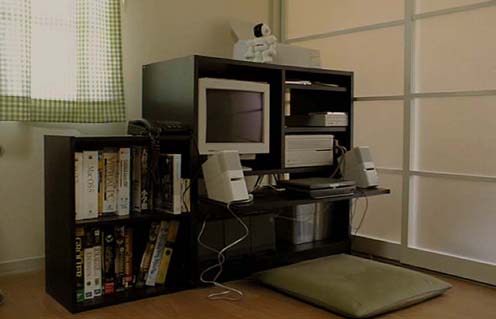 | 2000/3/31公開。たこいの新居のパソコン環境、ということで(笑)。 実はこの部屋、ダイニングキッチンなので、この窓の左側にはキッチンがあります(笑)。引き戸の向こう側は南向きのベランダ部屋ですが、寝室兼AVルームになってますが、こちらはそのうち(もちょっと片づいたら(笑))ご紹介できるかと(笑)。 デスクトップパソコンは言わずと知れたMacintosh IIci (powered by Sonnet Presto040)。とはいえ、新居に越してからは動作確認したくらいであまり動いてません(笑)。ということで、キーボードはプリンタの下のあたりの棚にしまってあって、その代わりに鎮座しているのがメインマシンのPowerBook 2400c G3/320。写真をよく見ると2400cにスピーカーコードとSCSIケーブルが繋がってみるの見えますが、この状態でIIci用のCD-ROMドライブとスピーカーが共用されてます。SCSIのデイジーチェーンの両端にIIciと2400cがあって、間にCD-ROMドライブと外付HDが挟まっている状態なので、両方同時に起動するとおかしなことになります(笑)。スピーカーはパソコン用のアンプ内蔵サブウーハーなしのスピーカーとしてはおそらく最高峰のBOSEのMediaMateですので、これで音楽CDとかMP3の再生はばっちりです(笑)。あ、あと、VirtialPCによるWindowsゲームのBGMとかも(笑)。 |