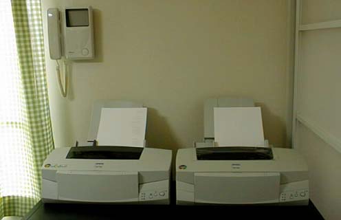 | 2000/11/26公開。現在ダブルプリンタ状態(笑)のうちのプリンタ環境。左がPM-770Cで右がPM-750C。店頭で見ただけだと同じ筐体を使い回してるのかと思えてたんだけど、こうして並べてみると実は全然形が違う新しい筐体だったことが判明(笑)。とりあえず、シリアルでMacに、USBでPCにつながって、ちゃんと使えてます。転居状兼クリスマスカードも年賀状も早々に印刷したし(笑)。 因みにエプソン製品のデザインも、今の最新製品よりこの世代のものがいちばん好きだったな。フロッグデザイン時代のMacintoshにはなかなかよく似合います(でも今IIciにはつながってないんですけど、このプリンタ(笑))。 |