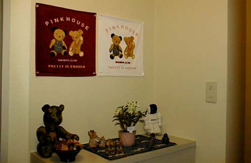 2000/12/20公開。12/18現在のたこいの部屋の玄関先。見ての通り、既に「熊の館」状態(笑)。柄にもなく飾られている花は12/17のクリスマスパーティーでもらってきたデンドロビウム。しかし、花が飾ってあるとそれだけでもなんだか玄関っぽくなる効果はありますね(笑)。