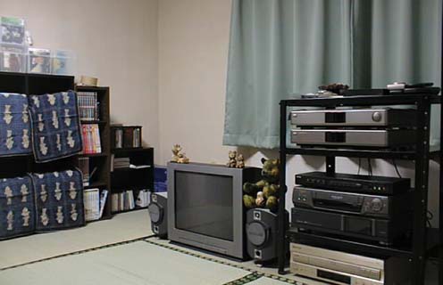 2001/7/27公開。ということで、およそ1年半暮らした2DKのアパートから築20年の3DKの社宅への引越もなんとか終わって(笑)、今のところいちばん片づいている新居の応接間(?)。AV機器の構成はおおよそ一緒なので前回の写真と比較してみるのもまた一興(笑)。しかしまあ、引越で苦労すると本を売る気が起きる、ということを実感する今日この頃(笑)。