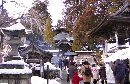 2002/1/9公開。家族で初詣でに行った定義山の本堂に参詣に向かう人々。