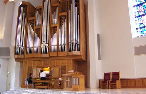 2002/5/26公開。3月末に仙台に出張した際の学会会場となった東北学院大学泉キャンパスの礼拝堂で昼休みに行われたパイプオルガンコンサートの寸景。流石私立というかなんというか、キャンパスごとにパイプオルガンひとつずつあるとか。アンコールでパイプオルガン風にアレンジした「さくらさくら」をやっていたので印象的でした。