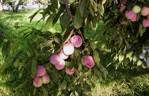 2002/9/22公開。ちょっと前に職場のレクリエーションで桃狩りにいったときの、すももの木。いや、すももだけじゃなくて、ちゃんと桃狩りもしたんですけど(笑)、桃の方は固くて大味で、こっちのすももの方が個人的には気に入ってました。