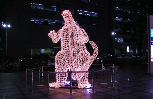 2002/12/15公開。新宿に突如出現したライトデコレーションのゴジラ。周りには雪だるまとかトナカイが並ぶ中、ゴジラとクリスマスと何の関係があるのかは不明(笑)。