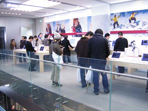 途中、ティファニー(笑)やらルイ・ヴィトン(笑)やらのショップが通りに沿ってごろごろ並んでいるのだが(笑)、そんなロケーションのところにアンテナショップを出店するアップルは無謀というかえらいというか……(笑)。まあもちろんそのロケーションを敢えて選んで出店したんだろうけど(笑)。 |