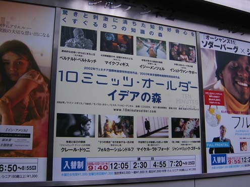 | 2004/01/18公開。1/3に東京で観に行った『10ミニッツオールダー・イデアの森』の劇場ポスター。12月に恵比寿で観た『10ミニッツオールダー・人生のメビウス』と比べると、個々の作品の独立性が高くて、微妙に共鳴して全体で1本の作品になる、という感じはなかったかな。邦題にもあるけど、ゴダールに代表されるような実験性が目立つ作品が多かったのもその印象に拍車をかけた感じ(中には、『人生の〜』の方に含めてしまった方がよかったんじゃないかと思える作品もあったけど)。全体として、前回同様に評点をつけるなら、70点くらいかなあ(笑)? |