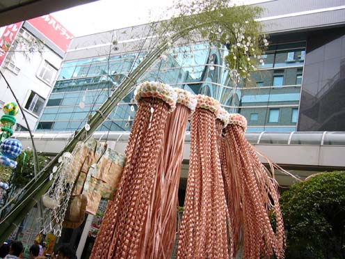 | それだけではあんまりなので(笑)、普通の七夕飾りもどうぞ(笑)。カラフルな飾りが多い中、モノトーンでシックなものをセレクトしてみました。 |
