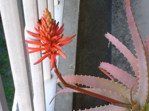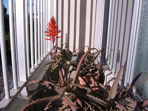 2004/12/31公開。たこい家ベランダに今年咲いたアロエの花。妻が独身時代からプランターに植えていたもので、花が咲いたのは今年で2回目。