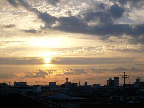 2005/01/01公開。正月なので、それっぽい写真を、ということで、おめでたそうな朝焼けの写真を。と、いっても、本日の写真ではないんですけど(笑)。まあ、2004年12月某日の焼津の社宅ベランダからの眺め。