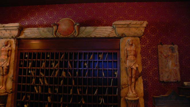 | ということで、こちらはタワー・オブ・テラーの行列待ちの間の寸景。世界の宝を集めたホテルのフロント、という設定ですが、古びた雰囲気がなかなかよく出来ていたかと。 |