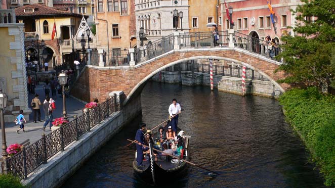 | よくいわれる「ヨーロッパ風の街並み」の代表的な一例として、ヴェネチア風のゴンドラ。 他、ノーチラス号の海底ポッドとか、ミッキーマウスのジャズ・コンサートとか、いろいろと楽しめました。 |