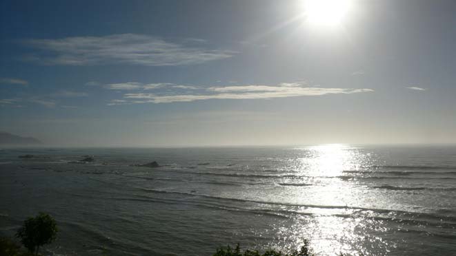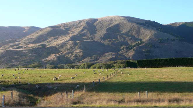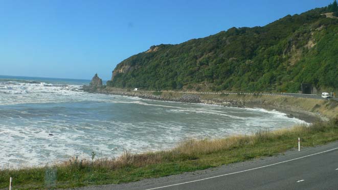| 鉄道のルートはクライストチャーチから南島の東岸に沿って北上。ということで、海岸線の寸景。展望車が一両あるんだけど、手すりがあるだけの吹き抜けだったので、風圧がすごくてちょっとこわかったかも(笑)。 |