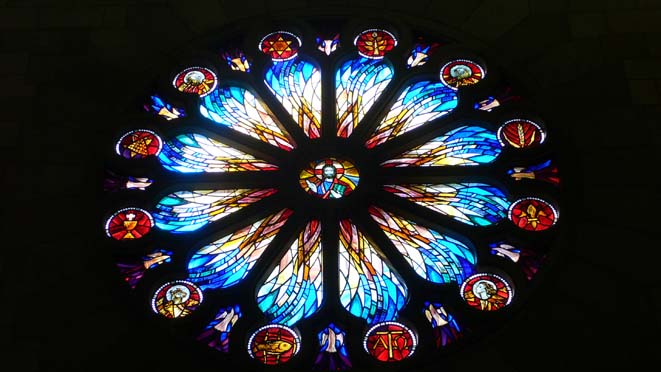 | 2013/04/30公開。ニュージーランド旅行に戻って、あしかけ4日間滞在したネルソンの街の大聖堂のステンドグラス。ちょっとピンボールゲームのクリスタル・カリバーンっぽい? |