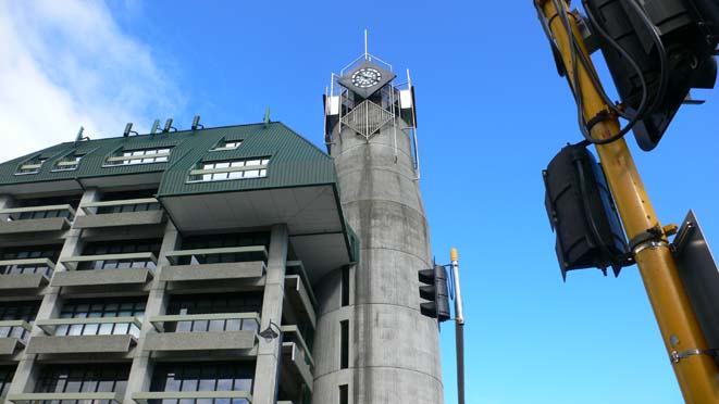 こちらは街道からネルソンの街中に入るあたりの角。ちょっとロケットっぽい謎の塔。大聖堂も同様のコンクリート打ちっぱなしの風合いでしたが、街としての統一感はあるかも。