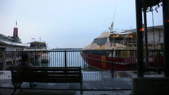 | 夕食はベイエリアまで歩いて、ガイドさんに教えてもらったレストランに。そのレストランの席からの眺め。 |