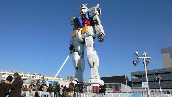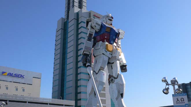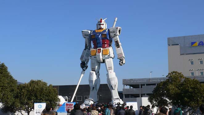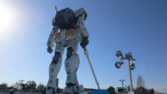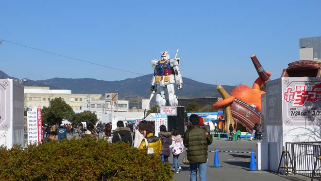 | 2014/12/20公開。実物大ガンダムが制作された翌年、東静岡駅前にお目見えした際の寸景。某警備会社のビルのすぐ前の立地なのは…まあ、特に意味はないんだと思います(笑)。 |