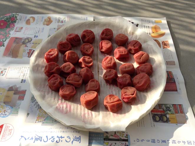 | 同じく年賀状に使った妻自作の梅干しの作成過程。 |