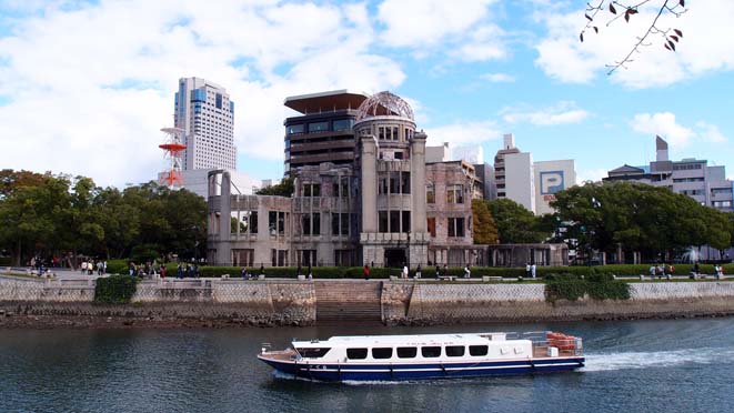 | 原爆ドーム(産業奨励館)を対岸から。映画ですずさんが立っていたのはこのあたりかと。 |