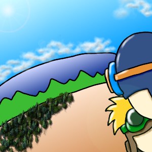 塔というのだから、きっとそこは高いところなんだろうなあ。もしかしたらりんご君は高いところがダメかも知れない。手強いモンスターたちをなぎ倒し、たかーいたかーい塔のてっぺんに辿り着く2人。塔には壁なんかなくて、太い柱と柱の間はすぐ外だったりして。その柱のすぐそばにマントが落ちている。ぼくがマントを拾い身を乗り出すように下を覗いていると、背後からりんご君のか細い声が。